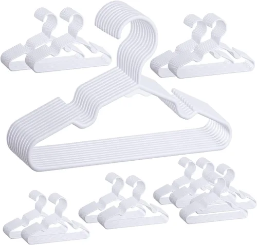 Perchas para ropa de bebé, paquete de 120 perchas de plástico blanco para niños, 11.5 pulgadas, ahorro de espacio, antideslizantes, para bebés,