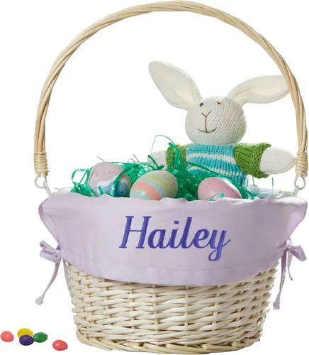 • Cesta de Pascua personalizada de sauce con asa plegable: haz que el nombre de tu hijo aparezca en su propia cesta de Pascua. Elija entre varias opciones de color de fuente e hilo para que sea verdaderamente único. El contenido de la cesta no está incluido. Diseño tejido de alta calidad: cada cesta está tejida a mano, asegurando un aspecto único y vintage. La cesta de color natural mide aproximadamente 17 a 19 pulgadas de alto x 12 pulgadas de profundidad con asa. Cada cesta puede variar ligeramente en color y tamaño. No hay dos exactamente iguales y pueden tener imperfecciones menores. Fácil almacenamiento con mango plegable: el mango cuenta con bisagras de metal blanco en cada lado, lo que hace que la cesta sea fácil de almacenar cuando no está en uso. Nota: El mango no se levanta por sí solo, añadiendo al diseño compacto. Forro de color extraíble: la cesta de Pascua personalizada viene con un forro extraíble que incluye un cierre de corbata. Es fácil de limpiar, simplemente limpia las manchas cuando sea necesario. Este producto no es un juguete. Las bisagras de mimbre natural y metal pueden tener bordes que no son adecuados para bebés. Perfecto para Pascua: esta canasta tiene el tamaño perfecto para rellenar con golosinas de Pascua y golosinas. También es una gran manera de añadir un toque personalizado a las celebraciones de Pascua de tu hijo. Contenido no incluido.