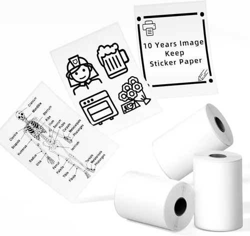 Compatible con: específicamente diseñado para funcionar con la mini impresora adhesiva T02/T02Pro/Q02E/M02X/Y02C/Q02/M02L Papel adhesivo térmico: la superficie lisa permite un fácil manejo y una mejor adherencia de las tintas. El papel adhesivo negro sobre blanco hace que tus impresiones sean más únicas y claras. Duración de la imagen: 10 años. (Mantener alejado de la luz solar, la humedad y reducir la fricción). Sin BPA Especificaciones precisas del papel: el papel tiene dimensiones específicas a tener en cuenta. Con un ancho de 2.08 pulgadas (2.087 in) y un diámetro de 1.18 pulgadas (1.181 in), junto con una longitud de 11.48 pies (11.5 ft). Y el ancho imprimible es de 1.97 pulgadas de cantidad de papel para satisfacer tus demandas creativas o prácticas Fácil de rasgar y cortar: la calcomanía tiene un borde en blanco de 0.079 pulgadas, por lo que puedes despegar fácilmente la calcomanía a lo largo del borde. No solo eso, sino que también puedes cortar la impresión y el texto como quieras Escenarios de aplicación versátiles: este papel térmico brilla en múltiples escenarios. En proyectos de bricolaje, es un lienzo para tu creatividad salvaje para hacer regalos únicos o decoraciones del hogar. Para escribir un diario, añade encanto a tus entradas. En estudio, ayuda a organizar los pensamientos de manera efectiva. Y como calcomanías, personaliza tus pertenencias
