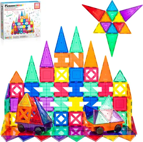 PicassoTiles® PT82 Juego de Creatividad de Ladrillos Magnéticos Transparentes de Construcción 3D - ¡Creatividad Más Allá de la Imaginación!