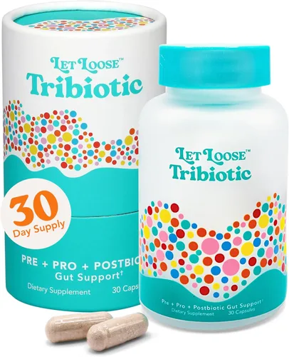 TRIBIÓTICO: Una cápsula. Tres puestos de trabajo. Tribiótico alimenta, añade y fortalece su intestino con prebióticos, probióticos y postbióticos para una digestión más suave y menos hinchazón. FLUSH & FLOURISH: Conoce tu nuevo ritual diario para un intestino más ligero y feliz. Nuestro sistema de 2 pasos que combina nuestras píldoras diarias para aliviar el estreñimiento y tribiótico diario para el mejor reinicio y reconstrucción. Las píldoras diarias para el estreñimiento funcionan para aliviar suavemente el estreñimiento, reducir la hinchazón y eliminar la acumulación. Piense en un nuevo comienzo y mejores cacas, cada mañana. El Tribiótico diario repone y fortalece tu microbioma intestinal, apoyando la digestión, la absorción de nutrientes, la inmunidad y el equilibrio intestinal a largo plazo. NUESTRA FÓRMULA: La mayoría de los probióticos se detienen solo en las Sin alimentos (prebióticos) + compuestos poderosos (postbióticos), solo estás haciendo la mitad del trabajo. Let Loose Tribiotic va más allá y te da los tres. Probióticos para sembrar su intestino con miles de millones de cepas resistentes y respaldadas por la ciencia. Prebióticos para alimentar esas bacterias buenas para que se multipliquen y realmente funcionen. Postbióticos para fortalecer el revestimiento intestinal, apoyar la inmunidad y mejorar la resiliencia. CÓMO USAR: Tomar 1 cápsula al día, con o sin alimentos. Para obtener los mejores resultados, haz que Tribiotic sea parte de tu rutina matutina, para que tu intestino obtenga el apoyo que necesita para mantenerse equilibrado durante todo el día. LA CIENCIA: Mezcla de probióticos, prebióticos y posbióticos, esta fórmula 3 en 1 no solo agrega bacterias, sino que crea el ambiente adecuado para que su intestino funcione como la potencia que debe ser. ¿El resultado? Digestión más suave, menos hinchazón, movimientos más regulares y un tú energizado y más ligero.