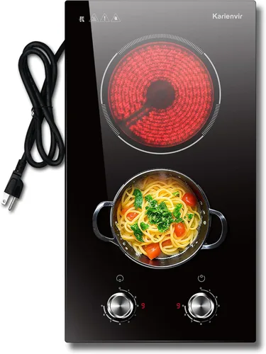 Placa eléctrica con control de perilla de 2000 W: la placa eléctrica Karienvir de 2 quemadores de 110 V está diseñada con un control de perilla, que es intuitivo y fácil de operar, lo que te permite ajustar fácilmente el tamaño del fuego. Cada quemador está equipado con perillas de control individuales para garantizar flexibilidad y precisión en el uso. La potencia total de la estufa eléctrica alcanza los 2000 W, el quemador de 1600 W se calienta rápidamente y el quemador de 400 W es adecuado para mantener el calor. Este diseño es eficiente energéticamente y flexible. Estufa eléctrica de 12 pulgadas, 2 formas de instalación: Esta estufa eléctrica de 12 pulgadas con 2 quemadores puede caber fácilmente en una variedad de espacios de cocina, ya sea una cocina abierta moderna o un apartamento compacto. Uno de los aspectos más destacados del quemador eléctrico de la cocina es que se puede utilizar como una estufa eléctrica de encimera colocada directamente para disfrutar de la comodidad de enchufar y usar, y también es compatible con la instalación incorporada, que combina perfectamente con las encimeras de la cocina, elegante y alta utilización del espacio. Estufa eléctrica enchufable 110v: La estufa eléctrica Karienvir de 110v con 2 quemadores está equipada con un diseño de enchufe para garantizar la seguridad de uso. Sin necesidad de cableado adicional, la función plug-and-play hace que el quemador eléctrico sea increíblemente fácil de instalar y usar. Ya sea para la cocina familiar diaria o la preparación de alimentos para pequeñas reuniones, esta placa de inducción eléctrica de 110 V de doble quemador es la elección ideal para usted, y le brindará una diversión y comodidad de cocina sin precedentes. Plato de Cocina Eléctrico de Vidrio de Seguridad: estufa eléctrica de 2 hornillas integrada con sistema de protección contra altas temperaturas, cuando se detecta una temperatura demasiado alta, la estufa eléctrica se cerrará automáticamente, previniendo efectivamente accidentes. Al mismo tiempo, la función de advertencia de calor residual mostrará "H" después de cocinar, recordándole que la superficie aún puede estar caliente, no tocar. La función de cierre automático añade una capa de tranquilidad a la ajetreada vida en la cocina, garantizando seguridad durante su uso. La estufa eléctrica es adecuada para todo tipo de utensilios de cocina: la estufa eléctrica de 110 V tiene una amplia gama de compatibilidad con utensilios de cocina, ya sea de hierro, cerámica o vidrio, se puede calentar de manera estable en esta estufa eléctrica de 2 quemadores, realmente logrando "un horno multiusos", enriqueciendo enormemente tus opciones de cocina. En comparación con las estufas de inducción tradicionales, las estufas eléctricas garantizan un calentamiento eficiente sin radiación electromagnética, proporcionando protección adicional para la salud de usted y su familia.