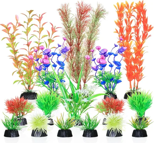 Paquete de 16: varios estilos coloridos, 10 plantas pequeñas (2 a 3.7 pulgadas), 3 plantas medianas (5.9 a 6.9 pulgadas), 3 plantas grandes (8.3 a 8.9 pulgadas) Cuidado conveniente: casi real para la decoración de peceras de agua dulce y salada, no requiere iluminación especializada u otros sustratos, no afecta el nivel de pH en el tanque Material: PVC suave que no se decolora, proporciona un ambiente cómodo y limpio para peces o mascotas [Fácil de usar]: Sosteniendo en la grava con base de cerámica, adecuado para peceras de más de 9 pulgadas de alto, consejos: simplemente remoje en agua tibia durante 10-15 minutos antes de su uso [Soporte]: 45 días de devolución de dinero, servicios de reemplazo/reembolso si problemas de calidad