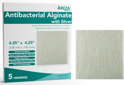 Plata alginate (alginate antibacterianos con plata) 4.25"x4.25" estéril; 5 Vendajes Por Caja (1) (4.25" x 4.25"), 1