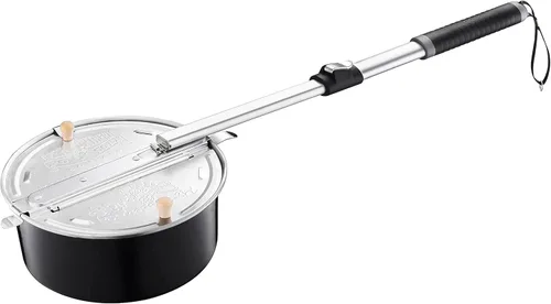 Palomitas de maíz para campamento: recoge fácilmente un lote de aperitivos salados favoritos de todos mientras disfrutas de una fogata o hoguera en el patio trasero con esta máquina para hacer palomitas de maíz. Esta práctica pieza de equipo de cocina a fuego abierto es un gran regalo para campistas y amantes de las palomitas de maíz por igual. Popping rápido: este hervidor de palomitas de maíz te permite convertir granos en 4 cuartos de galón de palomitas de maíz frescas en solo minutos. El diseño único permite que la humedad escape durante el proceso de reventado, por lo que tu golosina salada estará caliente, crujiente y deliciosa. Mango de extensión: esta innovadora pieza de equipo de cocina de fogata tiene un mango Cool Tube con un agarre cómodo. El mango de la sartén para palomitas de maíz se extiende hasta 22.8 pulgadas de largo para mantener tus manos seguras lejos del calor de las llamas. Fácil limpieza: la tapa de clip rápido hace que la limpieza sea muy fácil. No hay necesidad de sumergirse en tu suministro limitado de agua para lavar platos; simplemente limpia el interior de esta máquina de palomitas de maíz a la antigua con una toalla de papel y guárdala para su uso posterior. Detalles del producto - Materiales: metal y plástico. Dimensiones: 30.3 pulgadas de largo x 9.5 pulgadas de ancho x 4.5 pulgadas de alto. El mango para olla de palomitas de maíz se extiende hasta 22.8 pulgadas. Color: negro.