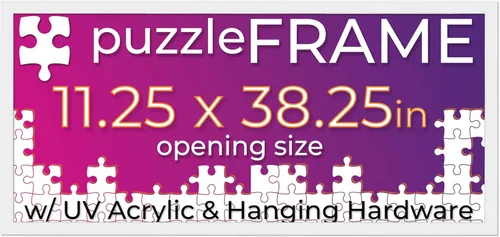 Marco personalizado de calidad de tienda Marco de madera blanco hecho para enmarcar y mostrar de forma segura rompecabezas completos de 11.25 x 38.25 pulgadas sin paspartú Accesorios para colgar en la pared fáciles de instalar incluidos para visualización vertical u horizontal. Las hojas de pegamento para rompecabezas se incluyen con este kit para asegurar tu rompecabezas para colgar y exhibir. Acrílico resistente a los rayos UV para ayudar a preservar tu rompecabezas y evitar que los colores se desvanezcan durante años Parte trasera de espuma libre de ácido, incluido en todos los marcos. Nuestro respaldo evitará que tu rompecabezas se amarillee y se deteriore con el tiempo. Todos nuestros marcos están fabricados con orgullo en los Estados Unidos