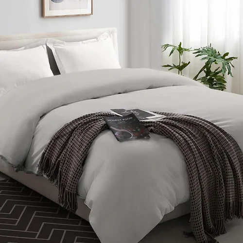 Precious Star Linen Funda de edredón Super King de 98 x 108 pulgadas | Algodón egipcio | Cierre de cremallera y lazos en las esquinas | Ligero y transpirable - 1 funda de edredón de primera calidad color gris plateado liso