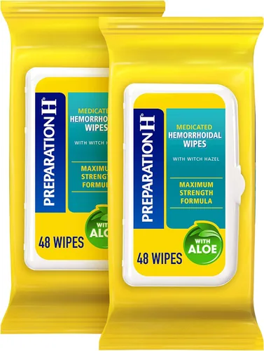 Dos paquetes de 48 unidades de toallitas Preparation H para hemorroides con hamamelis para una limpieza suave y diaria El tratamiento de hemorroides proporciona alivio de la irritación causada por las hemorroides externas mientras limpia el área afectada Toallitas medicinales formuladas con aloe calmante y hamamelis limpiador Las toallitas desechables ayudan a aliviar temporalmente la irritación de la piel asociada con las hemorroides Las toallitas medicadas Preparation H son biodegradables y seguras para fosas sépticas Las toallitas de hamamelis pueden usarse diariamente como parte de su tratamiento para el cuidado de las hemorroides Alivio de hemorroides de la marca número 1 recomendada por médicos para el tratamiento de hemorroides (1) Producto elegible para HSA y FSA