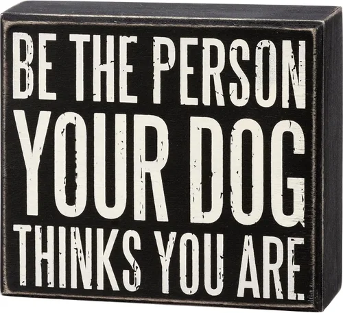 Construcción de madera resistente: construcción de madera resistente que crea una pieza de decoración versátil para el hogar. Detalles desgastados: cuenta con detalles desgastados para mayor interés. Fácil de exhibir: el letrero de madera para decoración del hogar es fácil de colgar o se puede colocar solo. El mensaje dice: Sé la persona que tu perro piensa que eres Diseñado en los Estados Unidos: orgullosamente diseñado en los Estados Unidos.