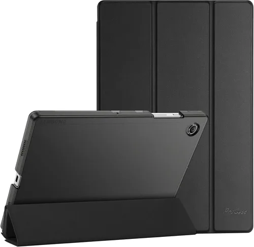 Funda protectora para Samsung Galaxy Tab A8 10.5" versión 2022 (modelo: SM-X200/X205/X207) solamente. Comprueba el número de modelo SM-X*** en la configuración de la tableta antes de comprar La cubierta frontal magnética delgada ofrece una gran protección; dóblala en un triángulo para apoyar la tableta en el paisaje para ver o escribir La parte trasera esmerilada translúcida muestra el encanto original de la tableta y protege tu dispositivo contra huellas dactilares y arañazos El imán asegura el cierre de la funda, fácil de poner y quitar; compatible con función de encendido y apagado automático Diseño clásico y profesional; acceso completo a todas las funciones (cámaras, altavoces, puertos y botones)
