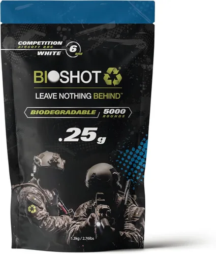Disfruta de la eficiencia y la precisión sin comprometer el medio ambiente: estos BBs biodegradables de alto rendimiento están hechos con materiales respetuosos con el medio ambiente que se descomponen naturalmente con el tiempo, sin dejar residuos ni residuos nocivos. Esto significa que puede disfrutar de la mejor experiencia posible de airsoft, sin tener que preocuparse por el impacto negativo en el medio ambiente. Funciona como BBs de plástico y son perfectos para Bolt Action, plataformas HPA, motores Polarstar y otras pistolas de airsoft. El borde competitivo que necesitas sobre tu competencia: tu juego es tan bueno como la munición que estás usando. Estas barras de aire comprimido de 0.88 oz son sin costuras y suaves con un pulido perfecto para que puedas disfrutar de tomas limpias y precisas con un vuelo más recto y una precisión constante. Nuestras cuentas de 0.236 in y 0.88 oz son en realidad de 0.234 in, que es el estándar de la industria, por lo que funcionarán muy bien con componentes internos de rendimiento como barriles de calibre apretado. No más atascos o errores que terminen el juego: la munición de mala calidad puede resultar en un BB o atasco roto que podría dañar tu pistola de airsoft. Nuestro proceso de fabricación patentado y la inspección basada en Estados Unidos permiten pellets más duraderos sin burbujas de aire o fragilidad, que puedes encontrar con otros fabricantes. Práctico y duradero para cuando estés listo para jugar: cada 5000 rondas de 0.88 oz de BioShot BBs viene en una bolsa resellable diseñada específicamente para una vida útil más larga con protección contra la humedad, el oxígeno y la luz, asegurando que puedas disfrutarlas durante períodos de tiempo más largos. Además, la bolsa que se puede volver a cerrar hace que sea fácil almacenar sus BBs con el resto de su equipo y garantizar que terminen donde usted los desea, en lugar de en el suelo. Más de 17 años de experiencia en la industria de airsoft: Bioshot es una pequeña empresa familiar y hemos estado empaquetando nuestros bbs en los Estados Unidos desde 2006. Nuestros procesos de control de calidad están tan afinados que solo se empaquetan y entregan los mejores bbs. ¡No te conformes con un rendimiento mediocre! Elige BioShot y experimenta la diferencia por ti mismo. Nuestro compromiso con la calidad y el rendimiento es inigualable en la industria del airsoft, y estamos seguros de que quedará impresionado con los resultados.