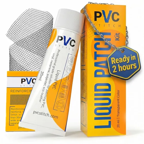 PVC Stitch es un kit de parche para colchón de aire duradero y resistente, parche para piscinas sobre el suelo, kit de reparación de bañera de hidromasaje, kit de reparación de forro de piscina, kit de parche para pista de aire, pegamento PVC, pegamento PU, pegamento inflable Cómo usar: Este es un PVC líquido que se convertirá en un parche permanente cuando se seque. No se necesitan otros parches. No necesita malla de cordón en orificios pequeños, pequeñas rasgaduras/desgarros o costuras. 1. Desinfle completamente su inflable y colóquelo sobre una superficie plana. La parte reparada debe estar seca y limpia. 2. Corta suficiente cordón para cubrir el desgarro. 3. Cubre el desgarro con o sin el cordón con el sellador de manera uniforme sin omisiones. 4. No unte en una capa delgada. 6. Listo para usar en 2-3 horas. PVC Stitch es un sellador resistente al agua para equipo de exterior y acuático, adhesivo resistente a los rayos UV, masilla resistente al calor y al frío. Pegamento resistente al agua. Mayor resistencia al daño, alta adherencia y fácil manejo. PVC Stitch está especialmente diseñado para parchear y reparar fácilmente incluso en condiciones de campo la mayoría de los equipos para exteriores: botes inflables de PVC y PU, balsas, kayaks y botes SUP, colchones de aire y camas de agua, forros de piscinas sobre el suelo, piscinas hinchables, bañeras de hidromasaje, bolsas y mochilas de cordura, vadeadores, tela de neopreno, tuberías y mangueras de PVC para plomería, y mucho más. Almacenar a temperatura ambiente. No funciona en materiales a base de nylon. El kit de reparación consta de 1 tubo (20 ml) y un cordón de malla de PVC. Vida útil – 2 años. Color transparente