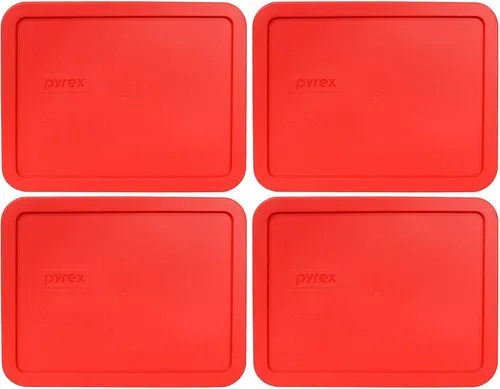 Incluye: (4) tapas de repuesto Pyrex 7211-PC de 6 tazas rojas para almacenamiento de alimentos, fabricadas en los Estados Unidos Calidad del material: plástico duradero, sin BPA, para soportar el uso regular sin doblarse ni agrietarse. Uso versátil: las tapas son seguras para su uso en el refrigerador, congelador y microondas. Compatibilidad: Específicamente diseñado para adaptarse al plato de vidrio 7211 de 6 tazas. Fácil mantenimiento: la limpieza es sin complicaciones ya que las tapas son aptas para lavavajillas (solo estante superior).