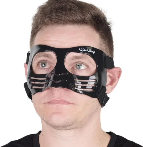 The face nasal protection provides full face protection. It is designed to disperse shocks away from the nose, protects against strong contacts and small impacts, eliminates and minimizes discomfort during collision. The product is easy to manoeuvre thanks to the fully adjustable elastic straps (shoulder straps length - 52cm). Once properly adjusted, the nose guard stays in place and hinders peripheral vision, so the ability to dribble is not affected. It also provides effective protection for injured noses to avoid complications, ensures safety during play. The nose guard has a simple but stylish design. Suitable for basketball and football. No need to use the helmet, the visor provides full protection. IMPORTANT NOTE If you are not sure whether the product is the right size for you, please feel free to contact us to guide you. Not suitable for children. The nose guard cannot offer the best protection if it is not properly fitted, so please make sure to measure the width of your cheekbones before purchasing the product. Do not try to manually change the face shield by heating it or deformation because it is designed on the basis of complex data. Any deformation can lead to injury. The only way to adjust the face protector is to adjust the straps. We care about the safety of our customers, so we do not recommend experimenting with the product.
