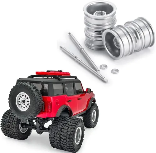 Hecho de metal de alta calidad. A prueba de golpes y alta resistencia al aplastamiento, gran calidad. Adaptador hexagonal: 0.276 in, apertura central: 0.118 in, diámetro exterior: 1.043 in. Adecuado para 1/24 Axial SCX24 AXI90081 Deadbolt AXI00001 AXI00002 AXI00004 AXI00005 Gladiator AXI00006 Bronco RC Crawler Car. El paquete incluye: 1 par de llantas traseras de metal, 1 par de ejes de conductor CVD.