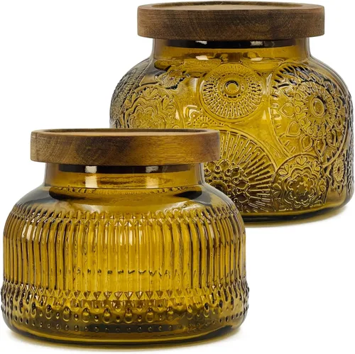 Recipiente de almacenamiento de alimentos decorativo de vidrio ámbar con tapa hermética de madera 720 ml 2 piezas, recipientes de almacenamiento de