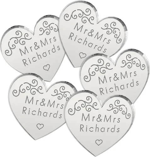 Decoraciones personalizadas para recuerdos de boda, un complemento perfecto para decoración de lugares, recuerdos, decoración de fiesta de recepción o una fiesta de aniversario. Material: espejo acrílico. Tamaño: 1.0 x 1.0 in x 0.1 in. Como regalos de boda, regalos para novios, como decoración elegante de boda, cumpleaños, día de San Valentín y diamantes u otros aniversarios, por nombrar solo algunos Estas hermosas adiciones a tu boda se pueden grabar con los nombres o palabras de tu elección en cualquier diseño que elijas Haga clic en el botón Personalizar ahora para agregar sus requisitos de grabado. Tenga en cuenta: La vista previa del grabado es solo una guía en la que podemos dimensionar su texto para que se adapte mejor al artículo.