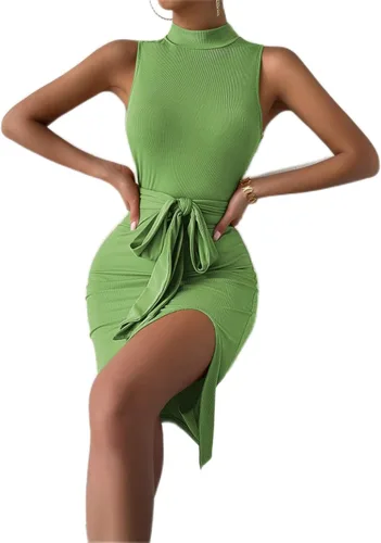 34 longitud de la correa : 70.9 in Busto: 29.5 in Tamaño de la cadera : 30.7 in Longitud : 38.6 in Hombro : 10.6 in cintura : 24.4" Small (3longitud de la correa : 70.9 in Busto: 31.1 in Tamaño De La Cadera : 32.3 in Longitud : 39.4 in Hombro : 11.0 in Tamaño De La Cintura : 26" Medium (3longitud de la correa : 70.9 in Busto: 32.7 in Tamaño De La Cadera : 33.9 in Longitud : 40.2 in Hombro : 11.4 in cintura : 27.6" Large (4longitud de la correa : 70.9 in Busto: 35.0 in Tamaño De La Cadera : 36.2 in Longitud : 40.9 in Hombro : 11.8 in cintura : 29.9" Color: negro, azul polvoriento, verde oscuro, rosa caliente, verde lima, rosa polvoriento. Estilo: Casual,Elegante Tipo de Patrón: Liso Detalles: Cinturón,Split,Rib-Knit,Muslo dividido Tipo: Bodycon,Tanque Forro cálido: No Escote: cuello alto Longitud de la manga: sin mangas Línea de la cintura: cintura alta Forma de dobladillo: Abertura Longitud: Corto,Longitud de la rodilla Tipo de ajuste: Slim Fit Tela: Ligeramente elástica. material: poliéster Composición: 93% Poliéster, 7% Elastano Instrucciones de cuidado: lavar a máquina o limpiar en seco profesional. Bolsillos: No Cuerpo: Sin forro Almohadilla de pecho: sin relleno Cinturón: Sí Traslúcido: No