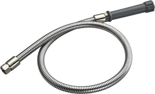 Fabricado en acero inoxidable que garantiza durabilidad y fiabilidad Manguera flexible de acero inoxidable de 44 pulgadas con mango gris resistente al calor Tubo interior de poliuretano Arandelas de manguera incluidas 3/4-14 salida hembra ONU, entrada hembra 3/4-14 ONU