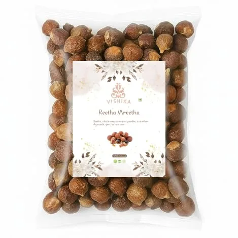 Lleva la sabiduría del Ayurveda a tu rutina diaria de cuidado del cabello con Vishika Reetha / Areetha Whole, una jabonera seca al sol de alta calidad seleccionada por sus ricas propiedades de limpieza natural. Reetha, conocida científicamente como Sapindus mukorossi, se celebra por su alto contenido de saponina, que crea una espuma natural que elimina suavemente la suciedad, el aceite y las impurezas del cuero cabelludo, sin quitar los aceites naturales esenciales. Perfecto para aquellos que buscan una solución para el cuidado del cabello sin químicos, Vishika Reetha promueve un cabello más fuerte, brillante y saludable. Ayuda a reducir la rotura, fortalece las raíces y apoya el crecimiento del cabello a largo plazo. Sus cualidades antifúngicas y antibacterianas naturales alivian las preocupaciones comunes del cuero cabelludo, como la caspa, la picazón y la sequedad, por lo que es un limpiador herbal potente pero suave. Ideal para tratamientos de cabello a base de hierbas, Reetha combina maravillosamente con Shikakai y Amla para crear un sistema completo de cuidado del cabello ayurvédico. Ya sea que estés preparando champú casero, enjuague de hierbas, agua reetha o una mascarilla nutritiva para el cabello, estas nueces enteras son fáciles de usar y extremadamente versátiles.
