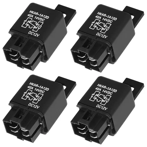 ESPECIFICACIÓN- Número de Pin: 4; Corriente: 40A; Voltaje de carga: 14V CC; Voltaje: 12V DC Material: nuestro relé para automóvil consta de pines de aleación de plata y bobinas de cobre puro con carcasa de plástico de nailon con aislamiento eléctrico para una mayor estabilidad y sensibilidad de los contactos y resistir la unión por contacto Aplicación: el relé de 12 voltios es perfecto para automóviles y motocicletas. Ampliamente utilizado para alarmas de automóvil, faros HID, luces estroboscópicas de liberación de maletero, luces antiniebla, bocinas de aire, ventiladores, etc. Confirma la combinación de pines antes de comprar DIMENSION- Total (aprox): 6.2x2.6x2.2cm / 2.44"x1.02"x0.87"(L*W*H). No hay número de pinout en el producto, consulta la imagen que se muestra para comparar Paquete: viene con 4 relés de coche