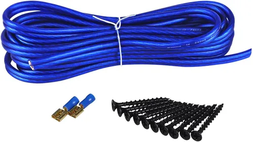 ALAMBRE DE ALTAVOZ DE ALTAVOZ DE ALTA CALIDAD DE 14 CALIDAD: Ofrece una transferencia de señal limpia y confiable a su subwoofer con cable de 12 pies de 14 AWG, superando las opciones más delgadas de calibre 16 para una claridad de audio superior. TORNILLOS DE PARED SECA DE PRECISIÓN: Incluye 10 tornillos metálicos elegidos por expertos para sujetar de forma segura su subwoofer sin astillar la caja, asegurando una instalación de grado profesional. Terminales de pala fiables: dos terminales de pala de alta calidad simplifican el cableado interno, proporcionando conexiones seguras para un rendimiento de audio consistente en cualquier configuración de audio de automóvil. Compatibilidad universal: diseñado para funcionar con la mayoría de los recintos de subwoofer individuales, por lo que es ideal para entusiastas del bricolaje y profesionales que construyen sistemas de audio personalizados para automóviles. CONFIGURACIÓN FÁCIL Y PROFESIONAL: Este kit todo en uno optimiza la instalación del subwoofer, ahorrando tiempo y asegurando una conexión limpia y duradera para graves potentes en su vehículo.