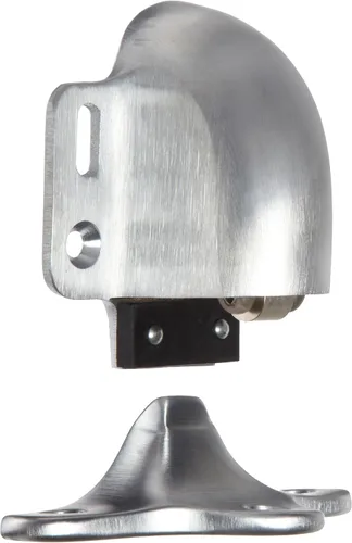 Soporte automático de latón para puerta y tope con un acabado cromado satinado que mantiene la puerta abierta mientras que también evita daños a las paredes Abrazadera montada en el suelo para uso con puertas que tienen 1/2" o menos espacio libre debajo de la puerta Cumple con las especificaciones ANSI/BHMA A156.16: L01301 Incluye tornillos de madera de cabeza plana para fijar el soporte a una puerta de madera maciza Incluye tornillos de madera de cabeza plana y anclajes de plástico para fijar el golpe a un suelo de madera