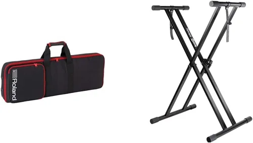 Diseñado para los pianos y teclados de la serie Roland GO con dimensiones internas de 35.039 x 11.811 x 3.543 in para adaptarse a modelos como GO:PIANO (GO-61P), GO:KEYS (GO-61K). Proporciona protección con bolsillos internos y externos para accesorios. El soporte de teclado de piano de construcción de metal doble x resistente garantiza una estabilidad adicional para teclados electrónicos digitales pesados y ligeros con tapas de goma antideslizantes. El mecanismo de liberación rápida en el soporte permite al usuario ajustar la altura de 4 a 38 pulgadas en comparación con la mayoría de los otros soportes que solo permiten cinco posiciones establecidas. Las correas de soporte de alta resistencia en el soporte unidas al teclado aseguran el teclado del movimiento durante el rendimiento. Asa y correas de mochila en la funda para un fácil transporte.