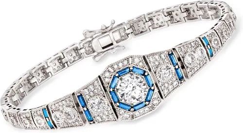 Ross-Simons 4.00 ct. t.w. CZ and .98 ct. t.w. Simulated Sapphire Bracelet in Sterling Silver
