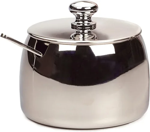 Dimensiones: el azucarero mide 3.25 pulgadas de diámetro y mide 2.25 pulgadas de alto con una capacidad de 8 onzas; incluye cuchara de 4.5 pulgadas de largo PARA TU COCINA: Este cuenco pulido es moderno y elegante mientras sigue sirviendo un propósito práctico; almacena y accede fácilmente al azúcar en tu encimera o mesa Diseño atractivo: la tapa al ras y la delicada cuchara para servir son los complementos perfectos para este azucarero, manteniendo tu azúcar limpia y virgen Construcción de calidad: hecho de acero inoxidable 18/8 duradero, pulido, una gran opción para tu cocina Instrucciones de cuidado: apto para lavavajillas, simplemente separa todas las piezas y colócalas de forma segura en el estante