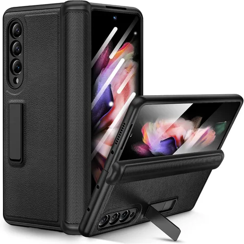 [Modelo compatible] Funda Ruky Kickstand para Galaxy Z Fold 3 5G (lanzado en 2021). El contenido del paquete incluye: 1 marco de pantalla [con protector de pantalla], 1 funda para Galaxy Z Fold 3 con soporte ajustable. [Con protector de pantalla integrado] Funda para Samsung Z Fold 3 con protector de pantalla táctil integrado, que evita que tu pantalla se raye y se agrieta. [Con soporte magnético integrado] La elegante funda resistente para Galaxy Z Fold 3 tiene ángulos de visión horizontales y ajustables, ayuda a las manos libres para ver, reunirse, aprender, etc. Muy adecuado para un estilo de vida de lujo ligero. Nota: No es compatible con la carga inalámbrica! Perfil delgado y elegante: hecho de material de policarbonato chapado de alta calidad y piel sintética de textura de lichi de lujo con pintura agradable al tacto para un toque delicado. Diseño delgado y ligero, excelente sensación, cómodo, antideslizante y agradable al tacto. [Servicio al cliente de Ruky - La precisión precisa puede adaptarse perfectamente a la posición de los botones que es para un fácil acceso a todos los puertos y botones. Ofrecemos servicio al cliente amigable para toda la vida. No dude en ponerse en contacto con nosotros si hay algún problema o sugerencia.