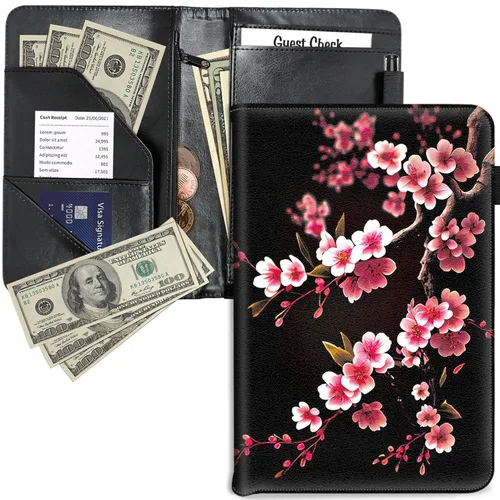 Pregunta sugerida sobre RYUITHDJP Libreta para mesera, libros de camarera con bolsillo con cremallera, diseño de flor de cerezo, negro, organizador de libros de servir ¿Este producto sí me sirve para lo que necesito?