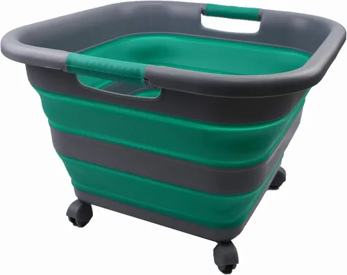 SAMMART Cesta plegable de plástico para la ropa sucia con ruedas, 39 litros (10.3 galones), contenedor plegable para lavandería, campamento y hogar