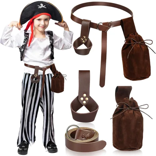 Sanwuta 3 piezas de disfraz vikingo medieval para niños, cinturón vikingo renacentista, soporte de espada medieval para Halloween