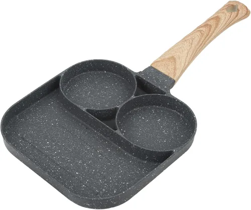【Fácil de usar】Los moldes antiadherentes de 3 compartimentos proporcionan propiedades de liberación fácil y fácil limpieza. La comida sale de la olla fácilmente Función: la sartén 3 en 1 es ideal para cocinar tortillas, hamburguesas, tocino, panqueques y cualquier otra cosa que quieras al mismo tiempo Material: hecho de aleación de aluminio de alta calidad, nuestra sartén dividida para huevos es resistente, no se rompe fácilmente Ampliamente utilizado: la sartén de 3 secciones es para el desayuno para la familia, compatible con estufa de gas y cocina de inducción Lo que obtienes: 1 olla para huevos fritos, 1 mango