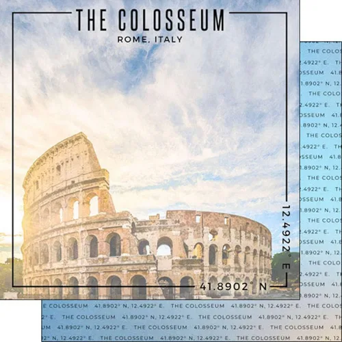 Una hoja de The Colisseum Rome Italy coordina papel de álbum de recortes de doble cara de 12 x 12 pulgadas de Scrapbook Customs.