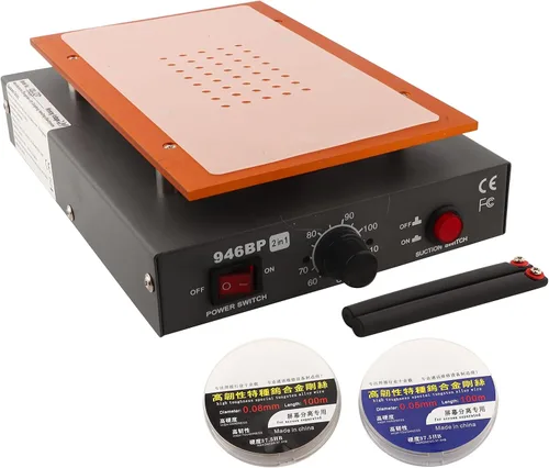 Descriptions:The LCD separator screen repair machine, used for separating glass lens,touch screen separation, cellphone glue removal,By this machine, you can separate the broken glass from LCD and if LCD is still working well, you only need to replace a glass screen, but no need to replace a full assembly screen.Whether for DIY project or cellphone repair shop, it will be a good choice!Features:Allow you to easily separate glass from LCD.Built-in super suction pump, small noise, hold the screen firmly.High quality Aluminum alloy heating plate, high thermal efficiency, upgrade silicone pad, adding heat aggregation holes, temperature uniformity.Compact size won't take up too much space, cooperated with the hot air gun, dismantle the chip safe and efficient.Fast heating, adjustable temperature control, 60-120 adjustable, the temperature is controlled precisely, and using with the separation wire is easier to split the screen.Suitable for 7" cellphone screen.Specifications:Power supply voltage: 110VPlug:US PlugMaximum power: 550WCurrent: 5 ATemperature control range: 60 ~ 120 Material: MetalModel: 946BPHeating effective size: 130*200mm(7-inch screen)Constant temperature stability: ±1.5Weight: 1770gPackage Induced:1 x LCD Screen Separator