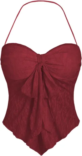 Pregunta sugerida sobre SHENHE Top halter de encaje para mujer, nudo frontal, espalda descubierta, asimétrica, Y2k, coqueta, sin espalda, para salir ¿Este producto sí me sirve para lo que necesito?