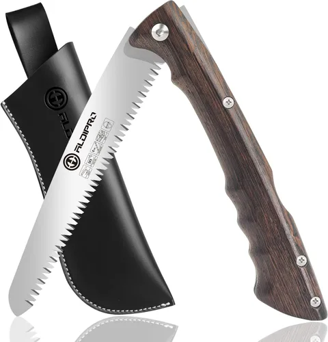 【6 TPI para una eficiencia de corte equilibrada】Esta sierra plegable cuenta con 6 dientes por pulgada, esta sierra de supervivencia logra el equilibrio adecuado entre velocidad de corte y suavidad. Cada diente está endurecido con precisión para abordar tanto la madera blanda como la dura, ofreciendo cortes limpios y precisos para todas tus necesidades de jardinería y trabajo en el jardín Hoja de acero SK5: hecha de acero SK5 de alta calidad, la hoja de esta sierra de mano plegable garantiza una durabilidad excepcional y un rendimiento de corte. El diseño de triple cortador mejora la velocidad de corte, lo que permite cortes precisos y sin esfuerzo Agarre cómodo y operación con una sola mano: hecha de madera hecha a mano de alta calidad, esta sierra de mano plegable cuenta con un diseño de mango ergonómico que garantiza un agarre cómodo y un control superior, minimizando la fatiga de la mano. La sierra plegable cuenta con un práctico mecanismo de apertura y cierre con una sola mano, complementado con un sistema de bloqueo fácil de usar. Este sistema bloquea de forma segura la cuchilla cuando no está en uso y facilita un rápido despliegue, extensión y bloqueo seguro en la posición abierta. Diseñada para ser compacta, esta pequeña sierra para madera cabe perfectamente en tu bolsillo mientras mantiene la facilidad de uso 【Multiusos para diversas tareas de corte】Esta sierra de mano sobresale en una amplia gama de aplicaciones, desde podar ramas y podar árboles hasta abordar proyectos de carpintería. Específicamente diseñadas para tareas de jardinería y mantenimiento de jardines, sus sierras compactas y manuales para el diseño de poda de árboles permiten cortes precisos, lo que lo convierte en una herramienta indispensable para cualquier requisito de corte Funda de cuero marrón para portabilidad: esta sierra de mano compacta para carpintería viene con una funda de cuero negro con dos hebillas ajustables en la parte trasera para un ajuste personalizado y un uso cómodo. La funda garantiza una fácil portabilidad, haciendo que esta sierra sedosa de supervivencia para podar árboles sea accesible dondequiera que vayas 【1 año de garantía de reemplazo】Experimenta total tranquilidad con nuestra sierra plegable ALDIPRO de alta calidad. Ofrecemos una garantía de 1 año que incluye reemplazos en lugar de reparaciones, junto con un servicio posventa excepcional adaptado a las necesidades de nuestros usuarios