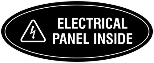 Panel eléctrico ovalado Signs ByLITA con cinta adhesiva, se monta en cualquier superficie, resistente a la intemperie, uso en interiores y exteriores para tu hogar, oficina, negocio o escuela. Dimensiones: 2 "H X 5 "W Plástico grabado con láser de alta calidad El letrero incluye cinta adhesiva de doble cara de espuma fuerte opcional para montaje en la mayoría de superficies. Letrero perfecto para tu hogar, oficina, negocio o escuela.
