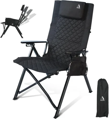 Ángulo libremente ajustable: la silla de camping reclinable ARURU te permite ajustar el ángulo reclinable del respaldo de acuerdo a tus preferencias o la escena. El reposacabezas se puede ajustar en altura, se adapta a personas de varias alturas y también se puede utilizar como soporte lumbar. Esta característica es muy efectiva para aquellos que sienten molestias o dolor en el área de la cintura. La silla de camping es adecuada para varias escenas como camping, salas de estar, balcones y oficinas, satisfaciendo diferentes necesidades. Podrás disfrutar de una experiencia de descanso cómoda y personalizada. Estructura estable y confiable: La silla de respaldo alto cuenta con soportes de aleación de aluminio de alta resistencia con una capacidad de carga máxima de 330.7 lbs. La superficie de los soportes ha sido sometida a un tratamiento de anodización, lo que los hace resistentes al óxido y a la corrosión, adaptándose a entornos exteriores complejos. Estética y comodidad combinadas: el asiento de la silla plegable para exteriores está hecho de tela Oxford 600D, que es resistente al desgarro y al desgaste, manejando fácilmente la fricción diaria y el tirón. La exclusiva tecnología de puntada de diamante y el suave relleno de algodón perla están perfectamente integrados, añadiendo estética y comodidad a la experiencia al aire libre. Esto lo convierte en una opción ideal para relajarse al aire libre. No es doloroso incluso después de largas horas de sentado: el respaldo superior proporciona un apoyo integral para la espalda y la cabeza, reduciendo la presión sobre la columna lumbar y cervical, permitiendo que el cuerpo y la mente se relajen. Los reposabrazos de madera de haya tienen un grano y color de madera natural, con un tono suave y liso, resistente y duradero, resistente a la decoloración y al agrietamiento, combinando belleza y practicidad. Instalación y plegado en 10 segundos: la silla de camping de respaldo alto ARURU tiene una patente de diseño. Simplemente levanta el marco del respaldo para doblarlo para guardarlo. Cuando está plegado, se vuelve compacto, con dimensiones de aproximadamente 7.9 in x 7.9 in x 35.4 in. Se incluye una bolsa de almacenamiento, y el peso es muy ligero, solo 8.8 lbs, por lo que es conveniente para llevar cuando sales. Con respecto al problema de que la espalda golpee el marco: Al configurar la silla para su uso, presione el tubo de soporte del respaldo hacia abajo hasta que la tela esté completamente extendida para evitar que su espalda golpee el marco.