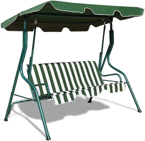 Silla columpio de 3 plazas con cojín suave: con un asiento súper ancho, esta silla columpio con dosel puede acomodar a 3 personas, lo que te permite a ti y a tu familia disfrutar del tiempo libre juntos. Además, nuestro asiento acolchado está relleno de espuma de alta densidad, lo que aporta la máxima comodidad. Toldo ajustable y extraíble: el ángulo del toldo superior se puede ajustar de 0 a 80 grados para adaptarse a la luz solar en diferentes direcciones y lograr una cobertura óptima de sombra. O puede quitar completamente el dosel si prefiere tomar el sol. Marco de acero resistente y estable: hecho de tubos de acero reforzado recubiertos con tratamiento antioxidante, nuestro columpio de patio es resistente y duradero, que puede soportar hasta 750 libras. Su marco triangular también aumenta la estabilidad y la seguridad adicionales. 4 almohadillas antideslizantes evitan eficazmente que el suelo se raye. Tela resistente a la intemperie: el toldo y el cojín están cubiertos con tela de poliéster, mientras que la capa inferior del cojín está hecha de tela Oxford. Los materiales seleccionados de primera calidad hacen que este toldo oscilante sea resistente al desgaste, a la decoloración, al sol y al agua, perfecto para uso en exteriores. Fácil de montar y mantener: el paquete viene con instrucciones detalladas (idioma español no garantizado) y todos los accesorios, por lo que puedes montar esta silla columpio con toldo en poco tiempo. Además, la superficie general es súper lisa, por lo que es conveniente para limpiar y mantener con un paño húmedo.