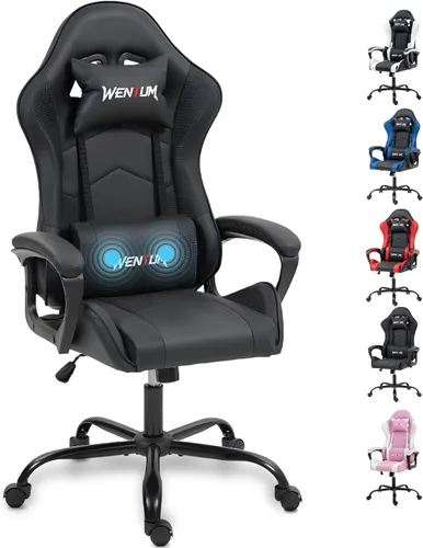 Silla de masaje para juegos, silla ergonómica de escritorio para PC con reposacabezas y soporte lumbar de masaje, silla de videojuegos con respaldo