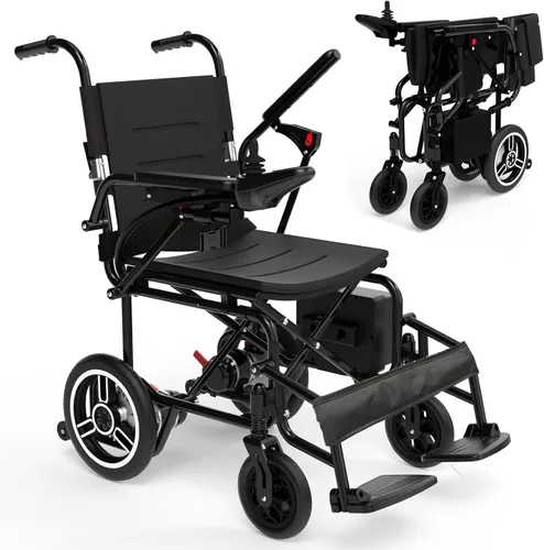 Portátil y plegable: esta silla de ruedas eléctrica se pliega fácilmente para un almacenamiento cómodo y cabe sin esfuerzo en el maletero de un automóvil o espacios reducidos. Dimensiones desplegadas: 37.4 x 34.25 x 21.65 pulgadas; Dimensiones plegadas: 10.6 x 10.6 x 31.5 pulgadas; peso: 58 libras. El marco resistente y duradero soporta hasta 300 libras, por lo que es ideal para el uso diario. 【Sillas de ruedas eléctricas para adultos】Equipada con un motor mejorado de 400 W de alta eficiencia, esta silla de ruedas eléctrica ofrece un alcance de más de 15 millas con una sola carga. Está alimentado por dos baterías de plomo-ácido de alta capacidad de 12AH/24V que se cargan completamente en solo 5 horas, lo que garantiza una mayor seguridad y una amplia potencia para navegar por amplios pasillos de centros comerciales o participar en actividades al aire libre. Control de joystick de 360°: diseñado específicamente para personas mayores, el joystick sensible de 360° proporciona un control flexible y preciso incluso en espacios reducidos. Esta silla de ruedas eléctrica garantiza un frenado instantáneo y cambios de dirección suaves. Es ideal para principiantes y uso diario. Diseño cómodo y ajustable: para proporcionar lo último en comodidad, esta silla de ruedas motorizada está equipada con un cojín de asiento con acolchado de espuma transpirable de doble capa de panal. El cojín es extraíble y lavable para una fácil limpieza. Para satisfacer las necesidades individuales de los usuarios, los reposabrazos ajustables facilitan la entrada y salida de la silla de ruedas. Seguridad todo terreno: diseñada específicamente para adultos y personas mayores, esta silla de ruedas eléctrica puede manejar fácilmente pendientes empinadas y resbaladizas. Incluso si dejas ir los controles mientras estás en una pendiente, el cinturón de seguridad, los resortes amortiguadores, las ruedas antipunta y el sistema de frenado de emergencia garantizan tu seguridad. 【Atención al cliente dedicado】 Asegurarnos de que estés satisfecho es nuestra máxima prioridad. Siempre que tenga consultas o necesite mantener su silla de ruedas funcionando al máximo, nuestro equipo posventa receptivo siempre está disponible para ayudar. Puede confiar en nosotros para un apoyo confiable cuando sea necesario.