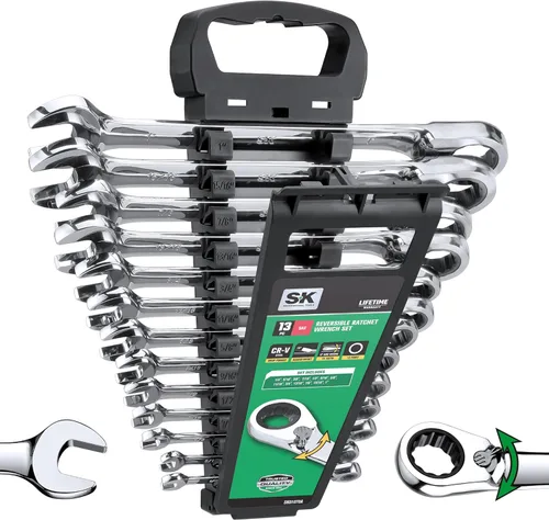 SK Juego de llaves de trinquete reversibles, juego de llaves combinadas, 13 piezas, SAE de 1/4 a 1 pulgada, 72 dientes, construcción CR-V premium,