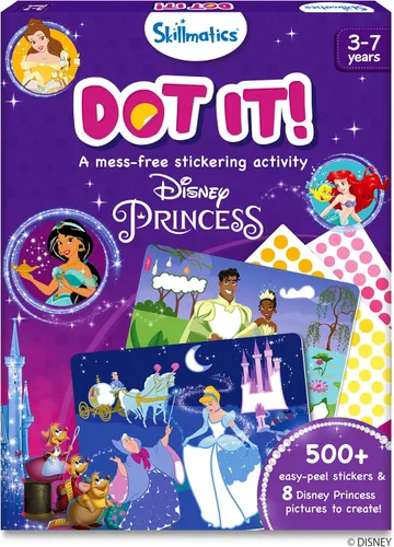 Skillmatics Dot It - Arte adhesivo de princesa Disney, diversión sin desorden para niños, rellenos de calcetines, más de 500 calcomanías, kits de