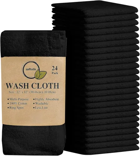 Softolle Paquete de 24 paños 100 % algodón (12 x 12 pulgadas), suaves, altamente absorbentes, toallas para la cara, paños de lavado para la cara,