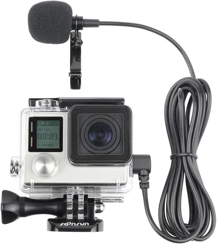 SOONSUN Carcasa protectora de esqueleto con hebilla de liberación rápida + micrófono con clip de solapa de 6.5 pies para cámara GoPro Hero4 Hero 4