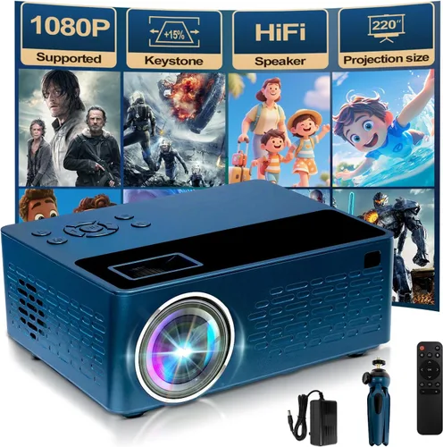 Soporte inteligente para proyectores 4K, viene con un mini soporte, mini proyector con altavoz estéreo, proyector portátil Full HD 1080P, compatible