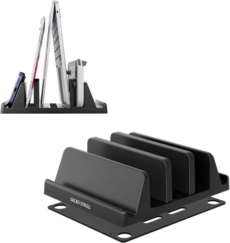 Diseño 5 en 1: este innovador soporte vertical para laptop adopta un diseño 3 en 1, integrando una computadora portátil, tableta y teléfono inteligente en una unidad para satisfacer sus diferentes necesidades en varios escenarios. Ya sea trabajo, estudio, videoconferencia o entretenimiento de ocio, puede cambiar fácilmente entre ellos, mejorando enormemente la utilización del espacio de escritorio. Material ABS de alta calidad: el soporte para laptop utiliza ABS de alta calidad seleccionado como material principal para reducir la posibilidad de arañazos al colocar varios dispositivos electrónicos y garantizar la durabilidad y la larga vida útil del soporte. El contrapeso de metal en la parte inferior hace que el soporte sea más estable y tiene un centro de gravedad más bajo. También tiene una excelente portabilidad y es fácil de transportar y mover. Ahorro de espacio: su orientación vertical ahorra valioso espacio en el escritorio, lo que lo hace ideal para estaciones de trabajo compactas o entornos de oficina compartidos. Ventilación: El diseño ranurado del soporte permite un flujo de aire óptimo, ayudando a evitar que su computadora portátil se sobrecaliente durante un uso prolongado. Amplia compatibilidad: compatible con iPad/iPhone, MacBook Pro/Air, Microsoft Surface, portátiles, portátiles, Dell, etc. Ya sea que estés en casa, en el estudio, en la oficina, en una cafetería o en movimiento, este soporte vertical para laptop puede ahorrar espacio para ti.